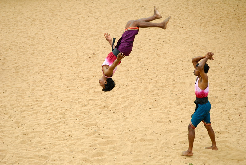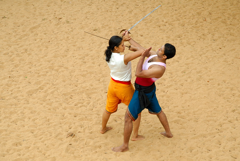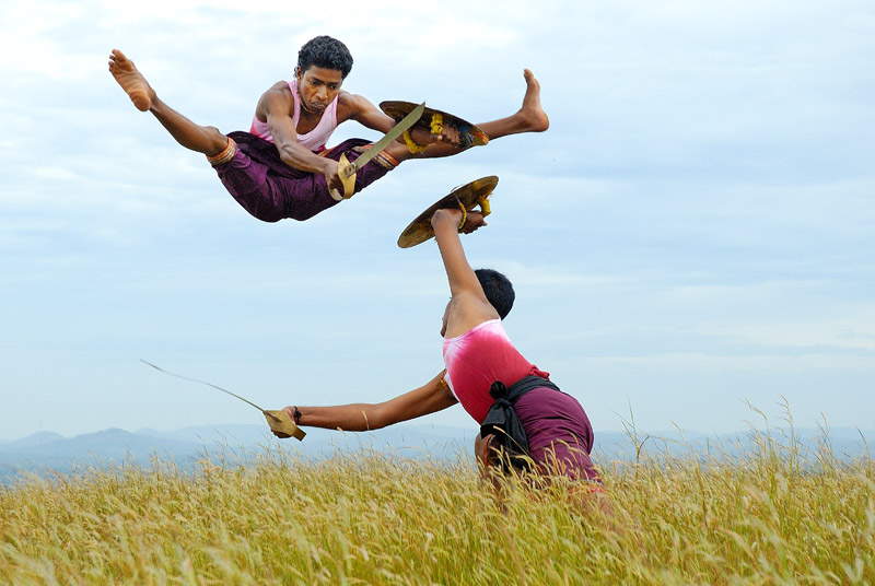 Kalarippayattu is the age-old physical cum-martial art of kerala. There is no other ancient martial practice in the country to compete with its training system and application techniques, compiled by the Great Gurus or Masters of the land. Kalarippayattu is a rare combination of martial training, physical culture, self- defence practice and physiotherapic treatment. It has a high reputation as an art with highly developed body language and expression.