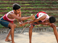 This is the fourth stage of Kalari training. A vast set of Piduthangal (Locks) and throws are combined with knuckle and elbow hits directed at Marmas or vital points of the opponents body is the peculiarity of this system. By this method one can disable the enemy completely.